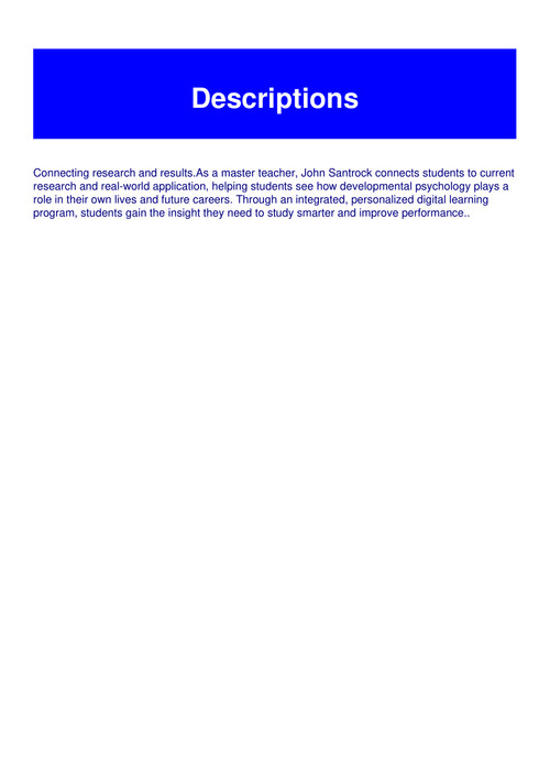 Life Span Development With Connect Plus Access Card Santrock